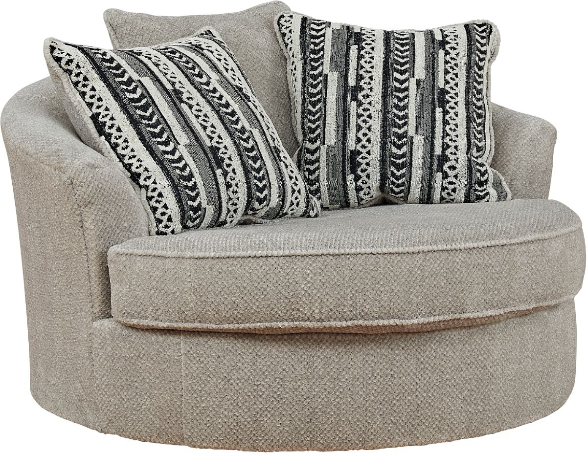 This oversized swivel accent chair caters to your need for contemporary comfort. Large in scale and decked out in feel-good fabric, it gives you space to sprawl out. And the 360-degree swivel motion makes it easy to view the TV or chat with others in your seating area. Quality time has never been so cozy.Read More
