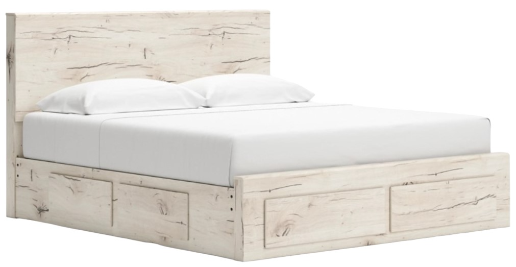 Includes panel headboard, storage footboard, under bed storage units and roll slats
