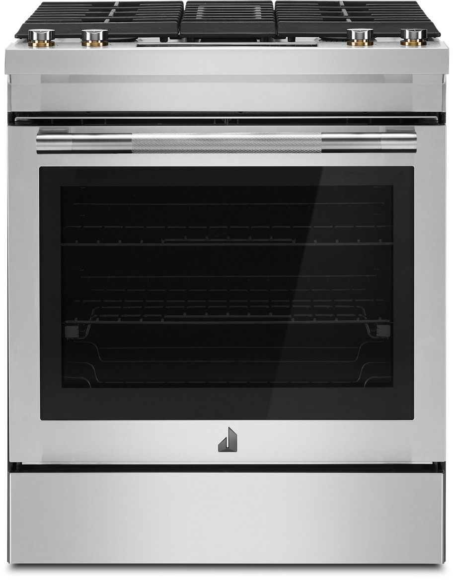 Revel in the power and flexibility of a JennAir® dual-fuel downdraft slide-in range. Cook multiple dishes on multiple racks in the 6.2 cu. ft. oven cavity, stir-fry over a burner with an output of up to 17,000 BTUs, then utilize a downdraft ventilation system to help draw odors away.Read More