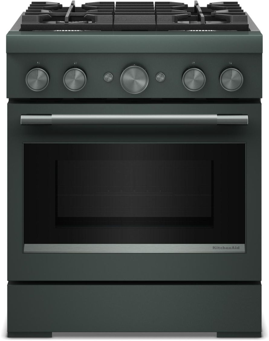 Empower your creativity with a 30-inch KitchenAid® Commercial Style Range with 4 burners. This dual fuel range combines a gas cooktop with the even baking of an electric oven. Two versatile 20,000 BTU Ultra Power™ Dual-Flame Burners offer the power and precision to sear, simmer, stir-fry and sauté. Even-Heat™ True Convection gives consistent baking and roasting, plus air fry mode that yields crispy, golden results.Read More