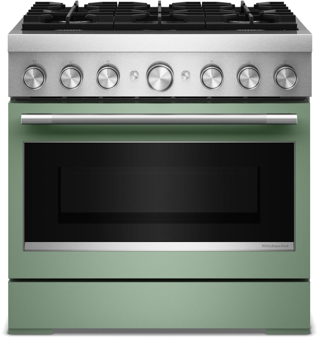 Expand your skills with a 36-inch KitchenAid® Commercial Style Range with 6 burners. This dual fuel range combines a gas cooktop with the even baking of an electric oven. Two 20,000 BTU Ultra Power™ Dual-Flame Burners offer the power and precision to successfully sear, simmer, stir-fry and sauté. Even-Heat™ True Convection gives consistent baking and roasting, plus air fry mode that yields crispy, golden results.Read More
