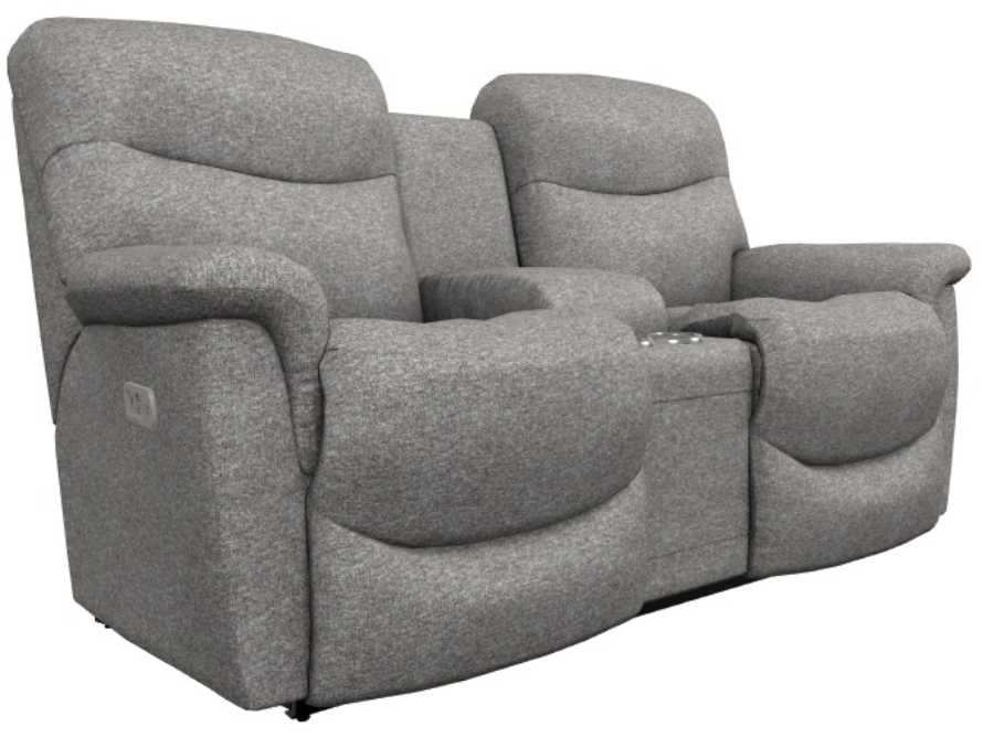 The roomy James power reclining loveseat with headrest and lumbar has cozy cushioning and laid-back style. Plush bucket chaise seats, pillowy backs and armrests, and power-adjustable head-to-toe support let you refine comfort in this haven for two!Read More