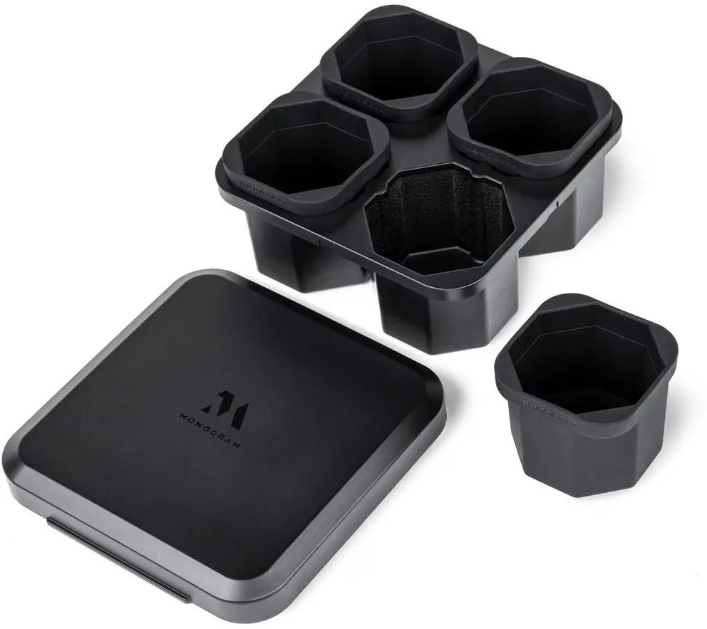 Monogram silicone custom ice molds craft four large 2.8” x 2.8” x 3” faceted ice gems that can be forged into the beautiful spherical ice that makes a lasting impression on guests and elevates every beverage.