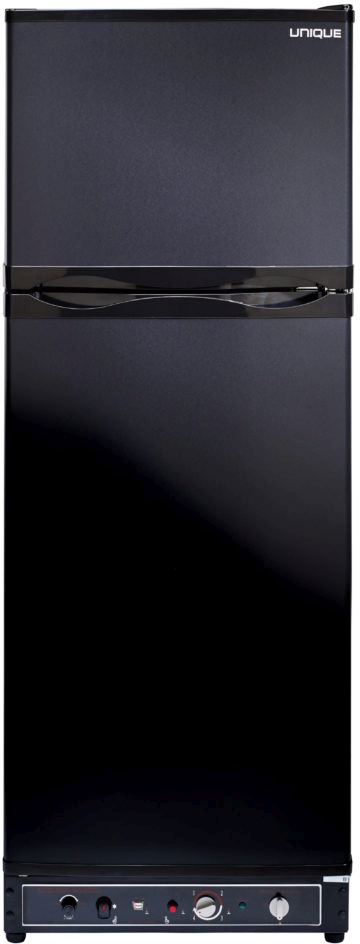Unique has ensured that the Unique 10 has the same width as the older Consuls/Dometic or Servels (at 23.5″ wide, fits within a 24″ counter opening). You can replace your older, smaller fridge with a larger more modern unit, without the need to modify your counters. Unique continues to innovate, and the Unique 10 now comes with electronic ignition (battery powered) and glass shelves.