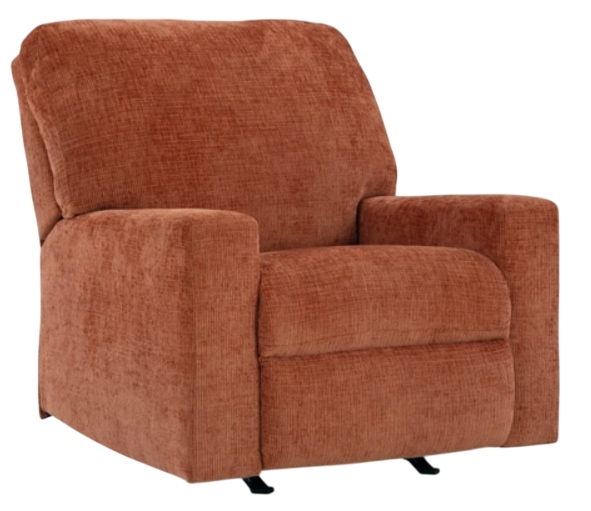 Looking to make a bold statement with color? Liven up your living room with this rocker recliner. Its trend-right burnt orange upholstery adds a playful pop of color to your decor. Pairing posh style with everyday comfort, this piece is a welcome addition to contemporary spaces.Read More