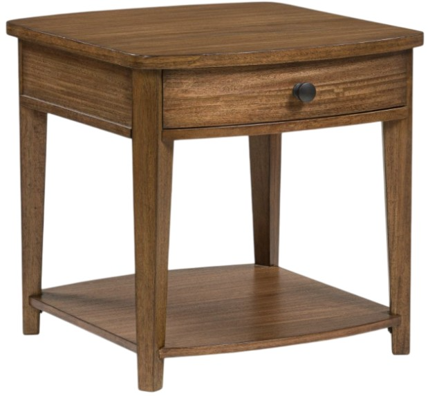 Serving up transitional style at its best, this striking end table looks equally at home in traditional and modern settings. Its classic brown finish merges effortlessly with a softly rounded top and tapered legs for a timeless, contemporary vibe. A lower shelf beautifully accommodates baskets, magazines, plants and more.Read More