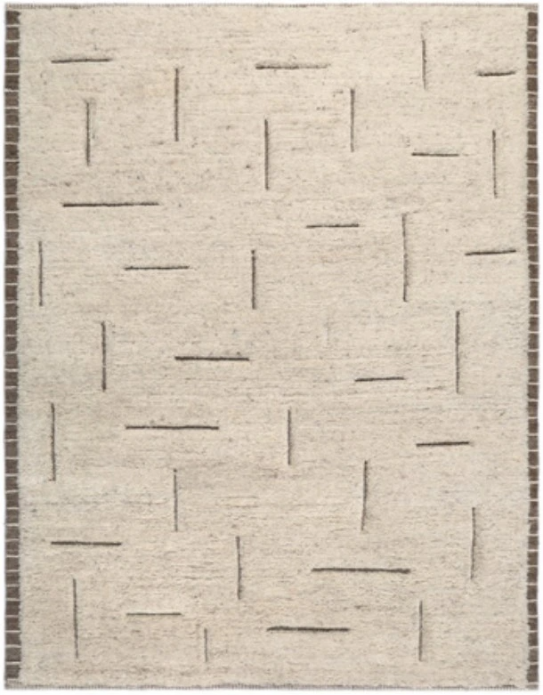 Hand woven high-low, geometric design in beige and brown