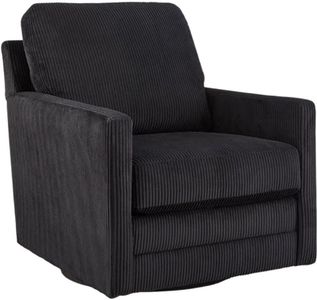 Clean-lined, contemporary style. Relaxed, homey comfort. This swivel chair has it all. Lightweight onyx-hued corduroy upholstery makes it a cozy yet head-turning piece. Factor in the 360-degree spin, and you've got a win-win.Read More