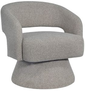 Indulge in the luxurious comfort and effortless style of this swivel accent chair. Its fine boucle upholstery and open barrel back create a chic and inviting look. And the 360-degree swivel base adds function to all that fabulous form.Read More