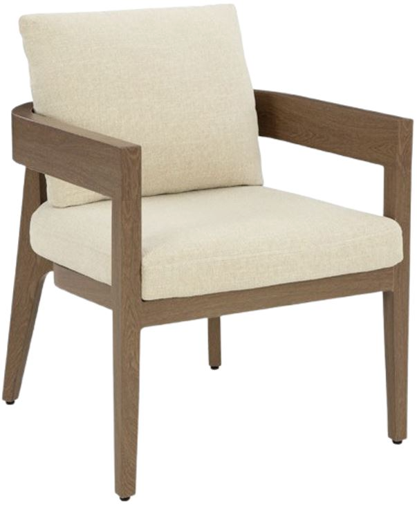 Elevate the appeal of easy-breezy living with this outdoor dining arm chair. Made to look like wood yet suitably durable enough to weather the elements, it's sure to serve you and your besties well, year after year. The gently curved chair features cushions wrapped in Nuvella+™ high-performance fabric for plush refinement.Read More