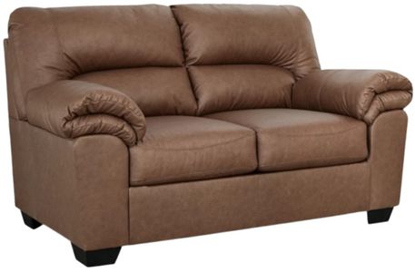 Modern comfort never looked so good. Sporting supremely soft yet durable cushions accented with high-fashion jumbo stitching, this stunning loveseat is the ultimate choice in comfortably cool, contemporary style. Its caramel-hued faux leather indulges with an upscale feel and wows like the real thing.Read More
