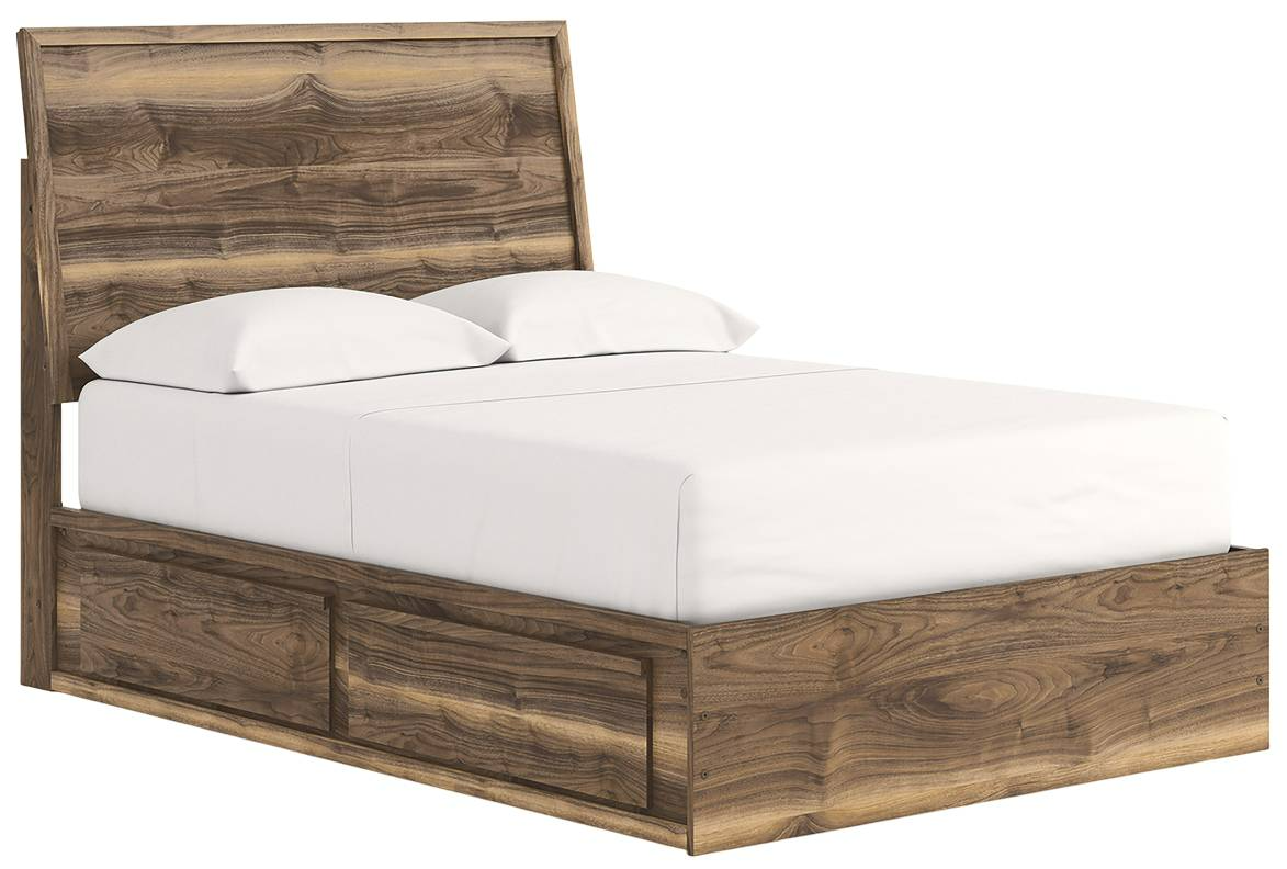 Nostalgic style, retooled for today’s trends. This full panel bed with storage puts an elevated twist on mod aesthetics. Its warm brown tones reflect the mid-century vibes you love, while the simple panel design incorporates contemporary motifs. Ultra-spacious storage in the footboard keeps clutter out of sight.Read More