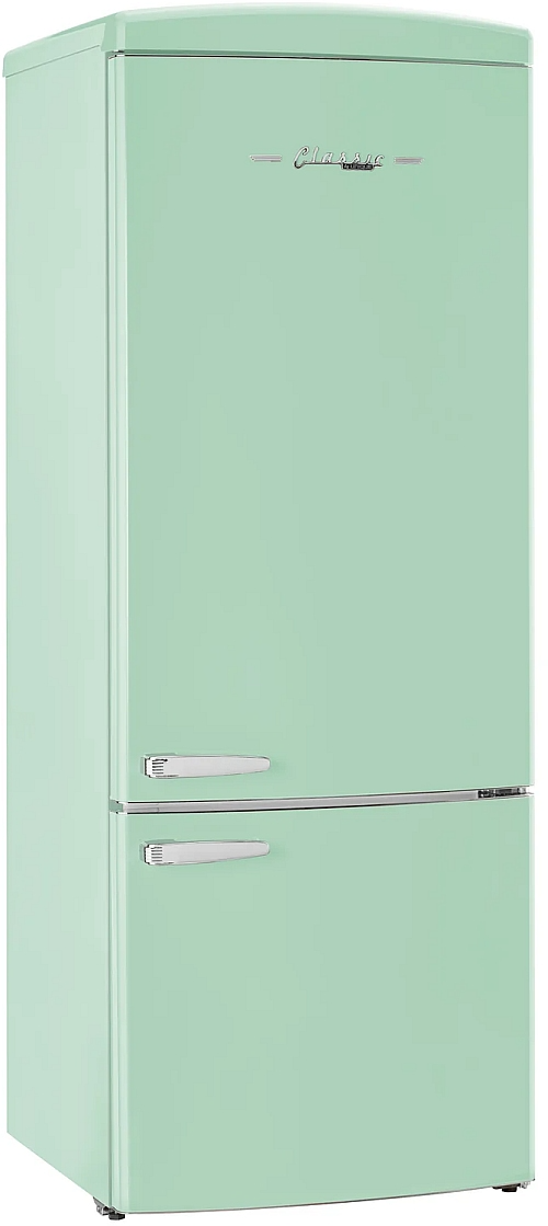Discover nostalgia with the 17 cu. ft. Classic Retro Bottom Mount Fridge, featuring chrome accent handles and adjustable glass shelves. Energy Star Certified for efficiency, it includes a digital control panel, LED display, wine rack, integrated ice trays, and frost-free operation for ultimate convenience. Economy and Super Freeze Modes lock in freshness, while the door alarm, freezer drawers, and humidity control crispers protect produce and ensure seam-less performance.Read More