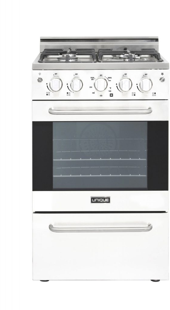 This compact Unique Prestige 20” stainless convection gas range delivers sleek modern design and superb performance at an affordable price. Convection cooking circulates heat for even distribution while the waist high broiler provides the option of intense searing.Read More
